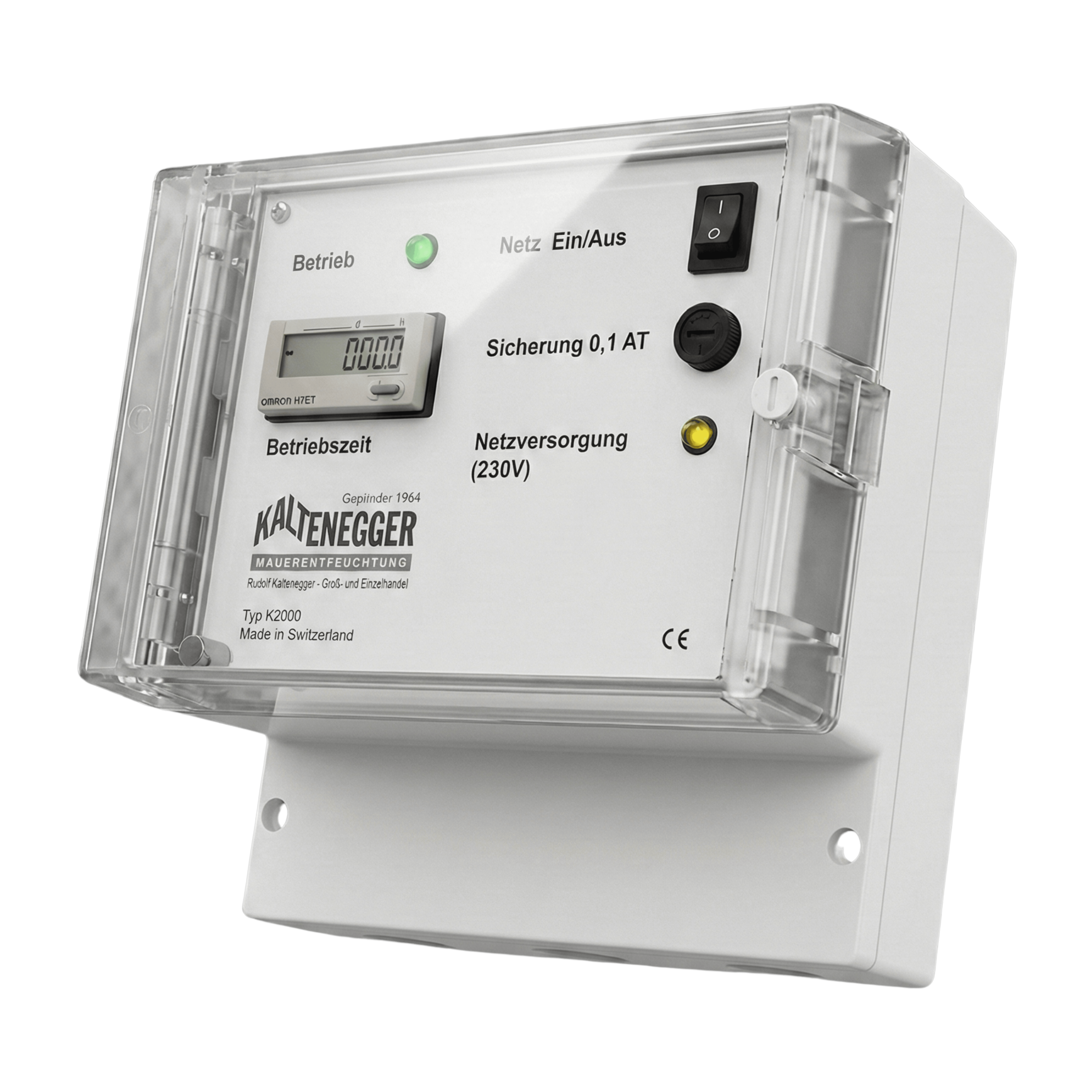 Das K2000 erzeugt ein schwaches, spezifisches Feld, das den kapillaren Wasseraufstieg stoppt. Feuchtigkeit wandert zurück ins Erdreich, die Wand trocknet nachhaltig aus